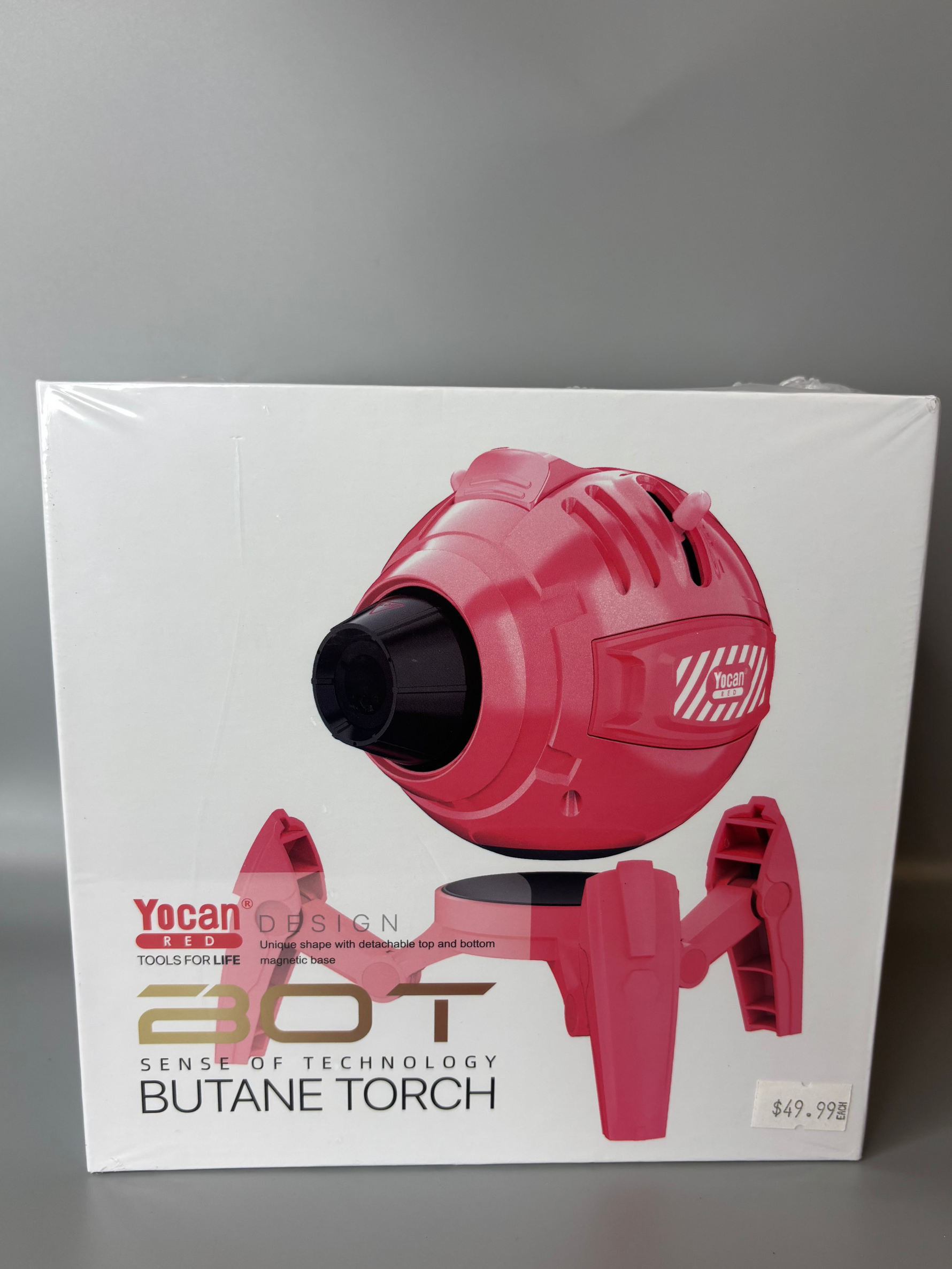 Meet your session’s new robo‑companion: the Yocan Red Bot Torch. With robot legs, a magnetic base, and a flame that roars up to 12 inches at ~2,500 °F, this windproof butane torch blends quirky style with serious heat. Adjust your flame, lock it in, and let the thermochromic guard change color as things heat up—robot approved.