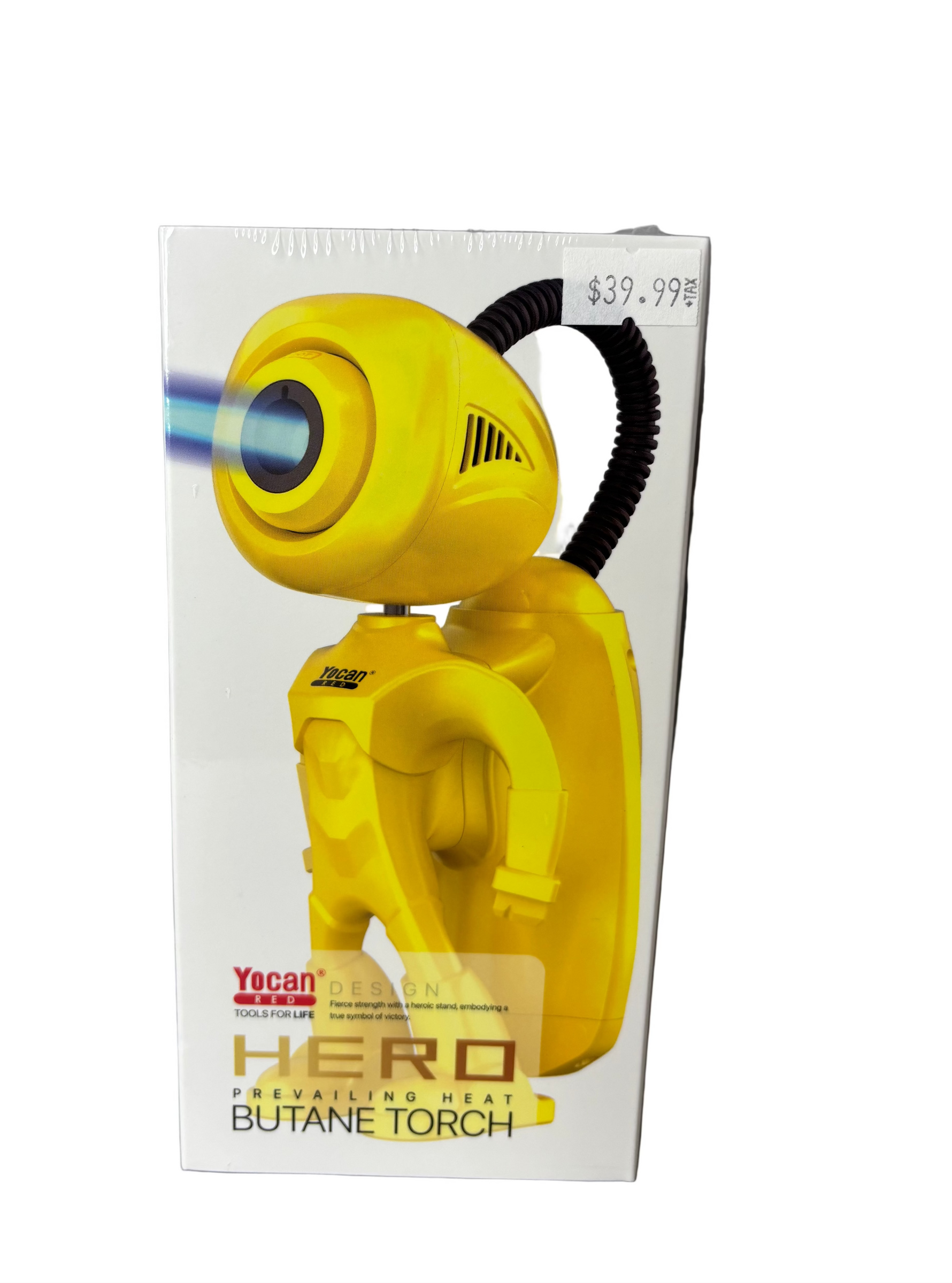 Unleash your inner superhero with the Yocan Red Hero Torch! This refillable butane torch boasts a six-inch windproof flame, piezo ignition, and a playful hero-inspired design. Whether you're dabbing, searing steaks, or lighting up a campfire, this torch is your trusty sidekick. Available in bold colors like black, white, blue, pink, and yellow, it's as fun to look at as it is to use.