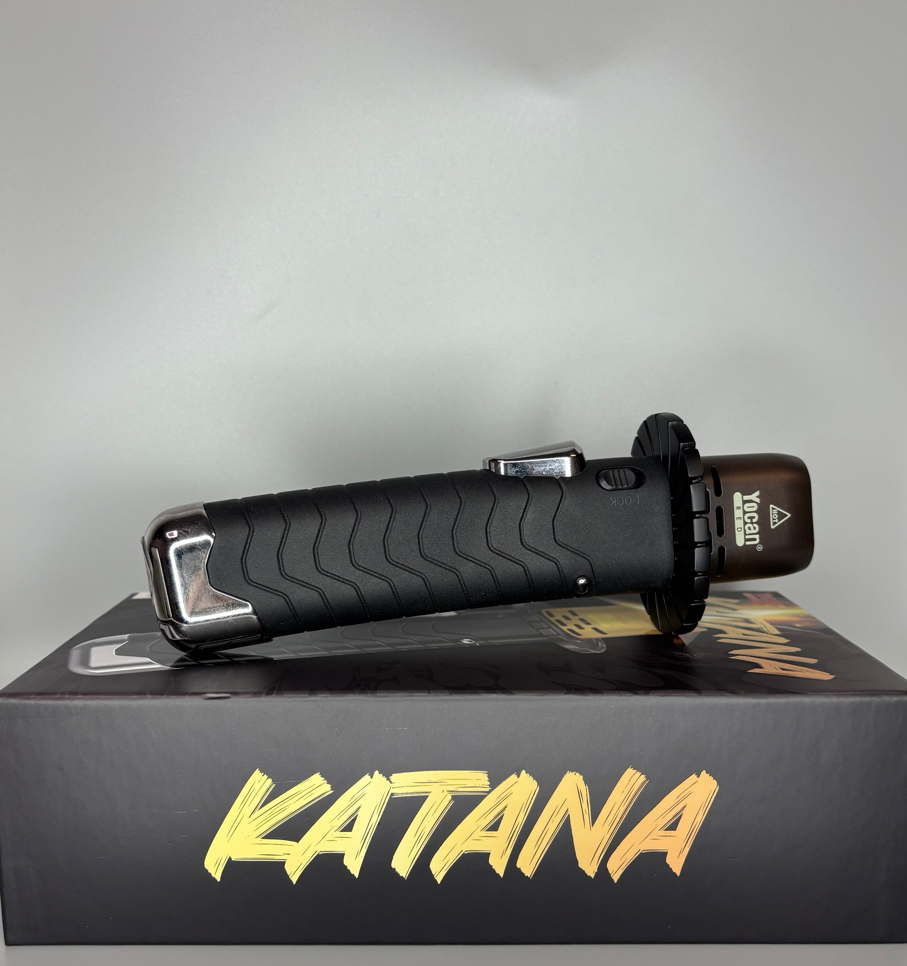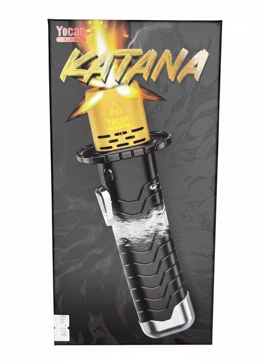 Unleash precision heat with the Yocan Katana Torch – designed like a samurai sword, built for serious power. Featuring a katana-style handle, piezo ignition, adjustable windproof flame (up to 2,500°F), and a thermochromic muzzle that changes color when hot. Perfect for dabs, cooking, or outdoor use. Refillable and ready for action.