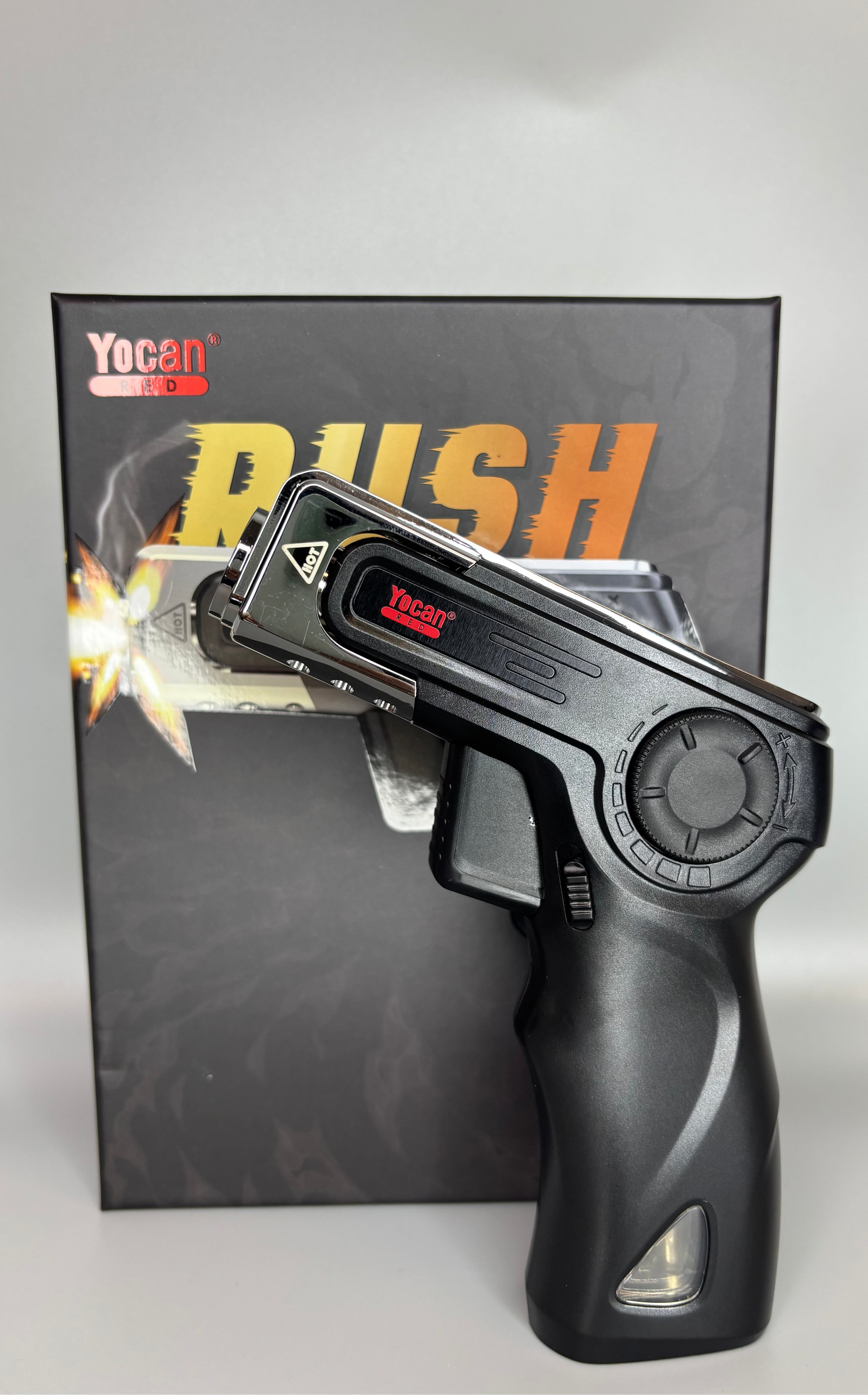 The Yocan Rush Torch brings serious firepower in a sleek, ergonomic package. With a high-temp jet flame (up to 2,500°F), adjustable flame length, and a comfy pistol grip, it’s built for everything from dabbing to culinary torching. The thermochromic muzzle changes color with heat, while safety locks keep it secure. Clean design, big performance—rush into your next session with confidence.