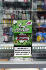 The image displays a retail box of "LOOSE LEAF" brand wraps, specifically in the "Emerald Dream" flavor. The packaging is predominantly green with lighter green and white accents, featuring a whimsical, cloud-like design and a stylized leaf graphic.